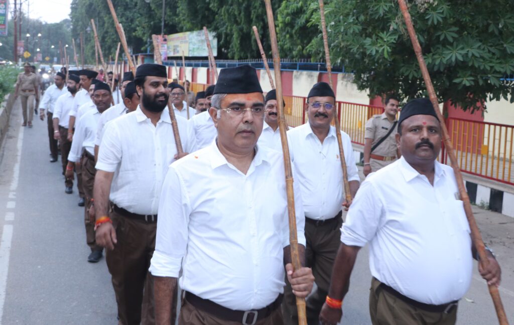 प्रतापगढ़। नगर की दयानंद बस्ती में स्थित शहीद उद्यान में राष्ट्रीय स्वयंसेवक संघ के स्वयं सेवको ने संघ की सौ वर्ष की साधना पूर्ण होने पर श्री विजया दशमी उत्सव मनाया साथ ही स्वयं सेवकों ने शहीद उद्यान से अपने पूरे गणवेश एवं दण्ड के साथ अम्बेडकर चौराहा वीएस ए कार्यालय मीरा भवन चौराहे से होता हुआ पथ संचलन पुनः शहीद उद्यान वापस आकर विश्वाम किया