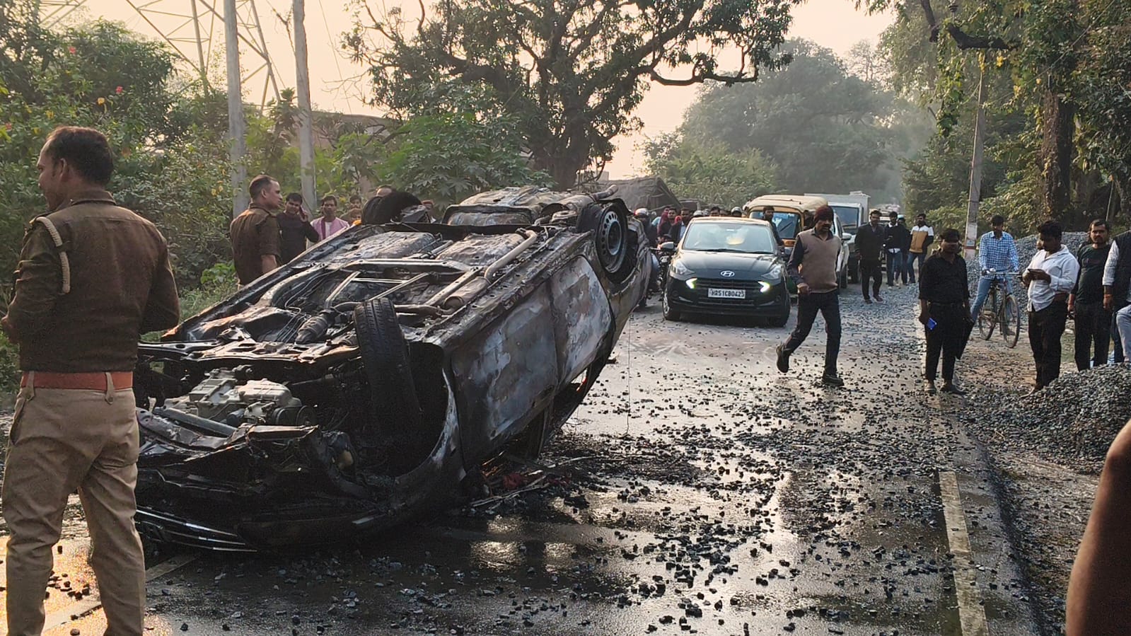 बताया गया है कि दोपहर लगभग लगभग 3 बजे एक एसयूबी गाड़ी तेज रफ्तार प्रतापगढ़ की तरफ से पट्टी की ओर आ रही थी। आनापुर मोड़ के निकट पहुंचने पर लोगों के बीच चर्चा है कि गाड़ी से स्कूल से लौट रही एक छात्रा की मामूली टक्कर हो गई। इसी के बाद तेज रफ्तार एसयूवी भी आगे बढ़कर सड़क के किनारे निर्माणाधीन मकान की रखी गई गिट्टी में फंसकर बीच सड़क पर ही पलट गई। जब आस-पास के लोग वहां पहुंचते वाहन में बैठे तीन नवयुवक उसके अंदर से बाहर निकले। पलक झपकते ही वह तीनों गाँव की ओर भाग गए।इसी दौरान बीच सड़क पर पलटी गाड़ी में आग की लपटें दिखलाई पड़ी। पूरे वाहन में आग लग गई।वह धू धूकर जलने लगा। इससे मार्ग पर यातायात बाधित हो गया। दोनों ओर वाहनों की कतार लग गई। आस-पास के लोगों ने फायर ब्रिगेड कर्मियों के साथ पुलिस को सूचना दी। फायर ब्रिगेड कर्मियों के साथ पट्टी कोतवाली पुलिस फोर्स के साथ मौके पर पहुंची। वाहन में लगी आग को बुझाया गया। बताया गया कि जिस गाड़ी में आग लगी है। वह महाराष्ट्र के नंबर की थी। पुलिस उसका डिटेल खंगाल रही है। वाहन को रास्ते से जेसीबी बुलाकर हटवाकर आवागमन चालू कराया गया। जबकि जिस छात्रा को टक्कर लगने की बात कही जा रही है उसे हल्की चोटें आई थी।स्थानीय लोगों के मुताबिक वह यहां से जा चुकी थी।